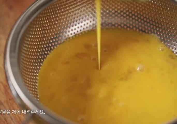 Beat the eggs in a bowl with chopsticks and put them through a strainer. Mix seasoning ingredients and kelp water well to make an egg mixture and mix them with vegetables.