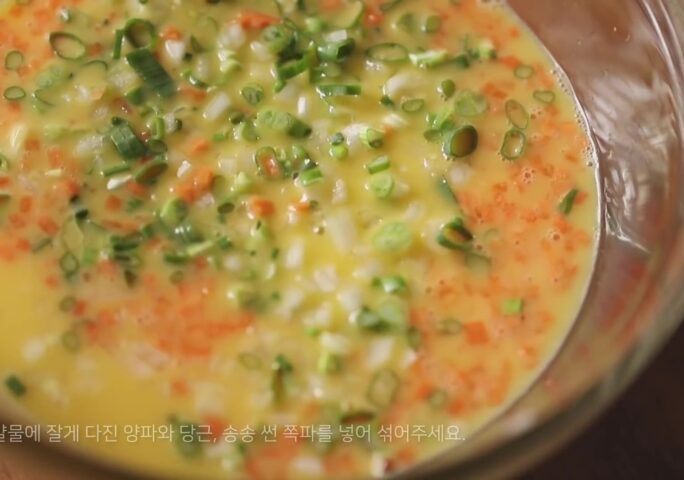 This Korean Steamed Egg recipe is the third in a row of simple egg recipes. It is very easy and quick to prepare, you just need some beaten eggs and vegetables and steam it on water. Ideal for a quick breakfast.