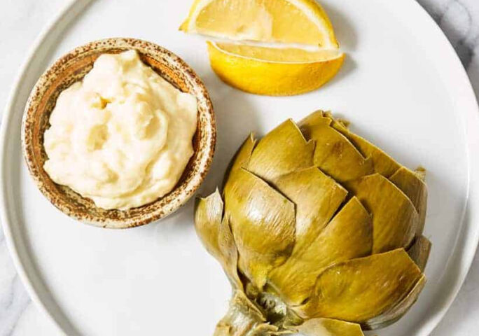 Learn how to cook and eat artichokes! I’ll also show you how to shop for, store and prepare your artichokes. I love to steam artichokes. This is the easiest way to cook them and is perfect for a beginner. An artichoke is an immature flower bud of a thistle plant. They are round green vegetables made up of lots of leaves tightly packed together. They have great health benefits; high in fiber, rich in antioxidants, and offer a good amount of Vitamin C. I will link to some artichoke recipes below. Enjoy!