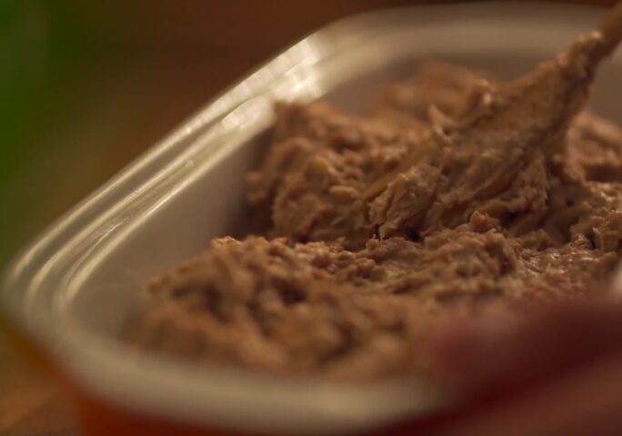 Add the oil, maple syrup, coconut, flour, baking soda, and baking powder and mix with a fork until combined. Do not overmix, it will look a little bit lumpy and that is ok.