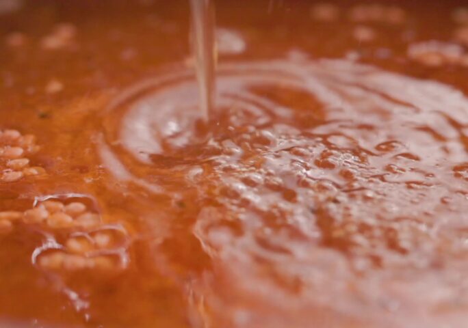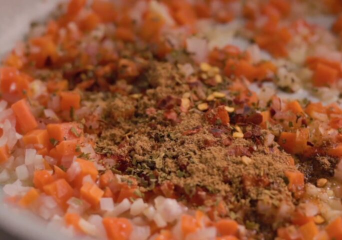 Add spices and bay leaves and cook for a few more seconds, then add broth and lentils. Season with kosher salt, bring to a boil, then lower heat to simmer for 15 to 20 minutes, until lentils are fully cooked. After the time has passed, remove the bay leaves from the soup.