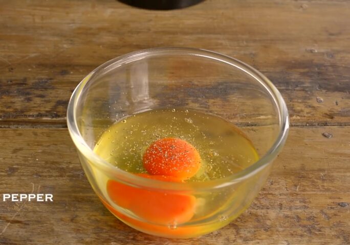 Beat the eggs with salt and pepper.