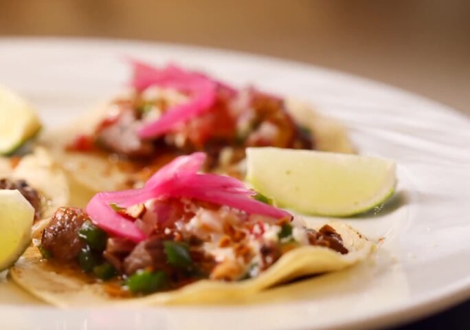 Fresh pico de gallo and crumbled Cotija add a vibrant, zesty note, balanced by the earthy crunch of roasted pumpkin seeds. A final touch of pickled red onion and a squeeze of lime give these tacos a mouthwatering tang, bringing a fresh, complex twist to this buffalo-inspired creation.
