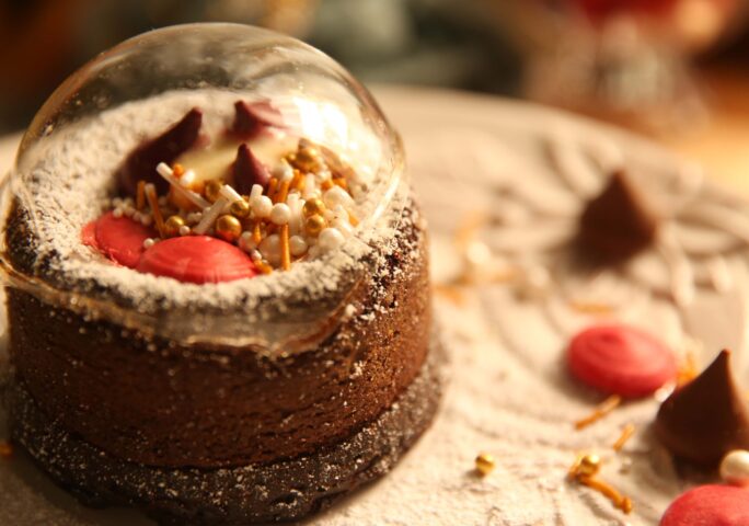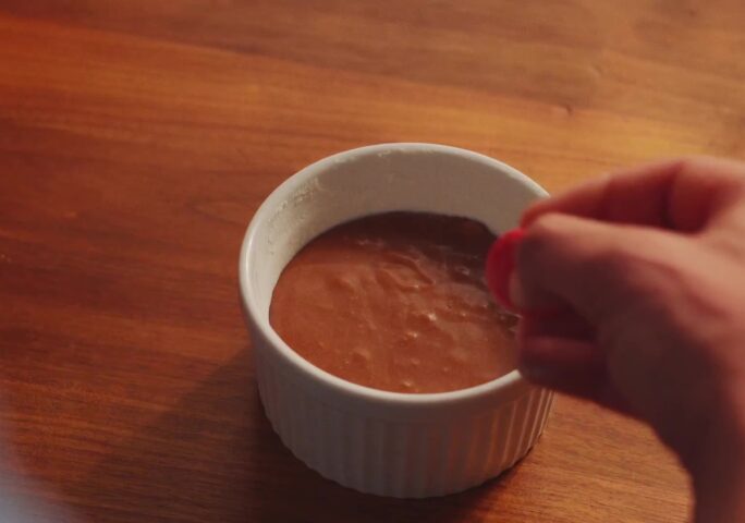 Butter two ramekins and dust with flour lightly, then tip out any excess. Chop the chocolate into small pieces and put the chocolate pieces with the butter in a heatproof bowl and set over a pot of hot water, stir until smooth, don't overheat. Set aside and keep warm.