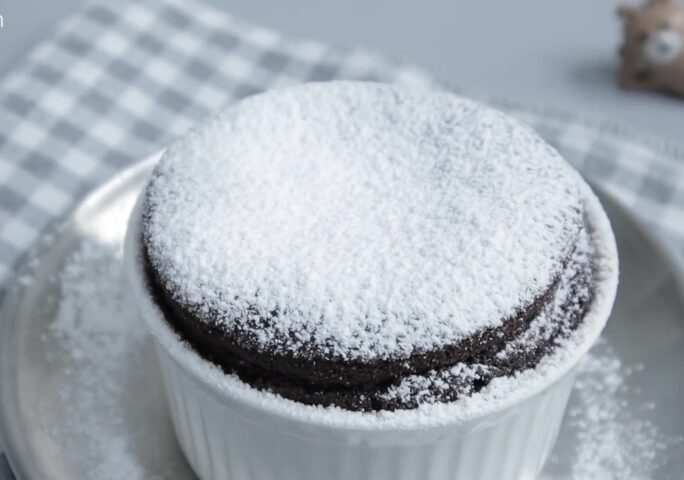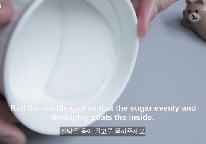 Roll the souffle cup so that the sugar evenly and thoroughly coats the inside.