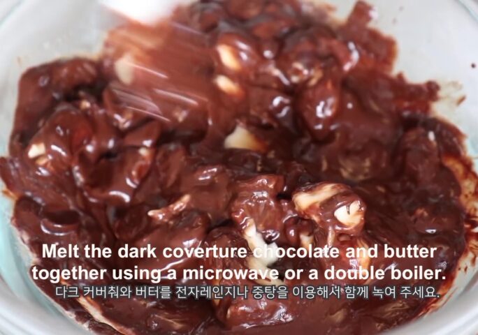 Melt the dark chocolate and butter together in a microwave or in a water bath.