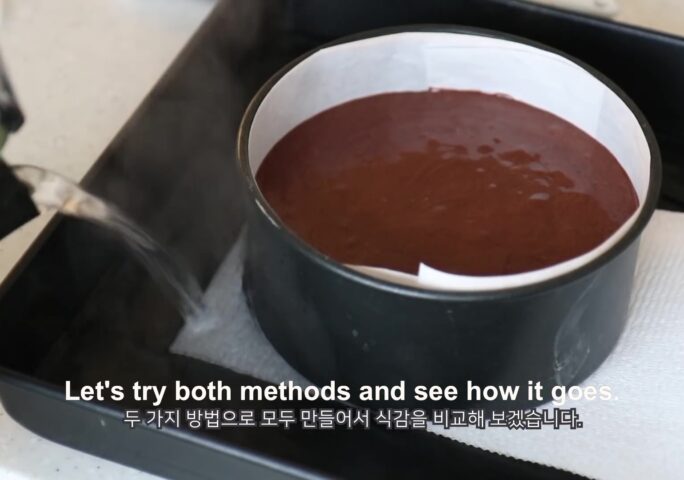 Today I made a rich and moist French-style chocolate cake, Gâteau au Chocolat. There are many different recipes for making Gâteau au Chocolat. But in general, chocolate cakes made with french meringue and melted chocolate are usually called ‘Gâteau au Chocolat’. This cake can be baked with a water bath or without a water bath. Today, I made one recipe in two ways and compared the results. Both are good so you can just have it your way:)