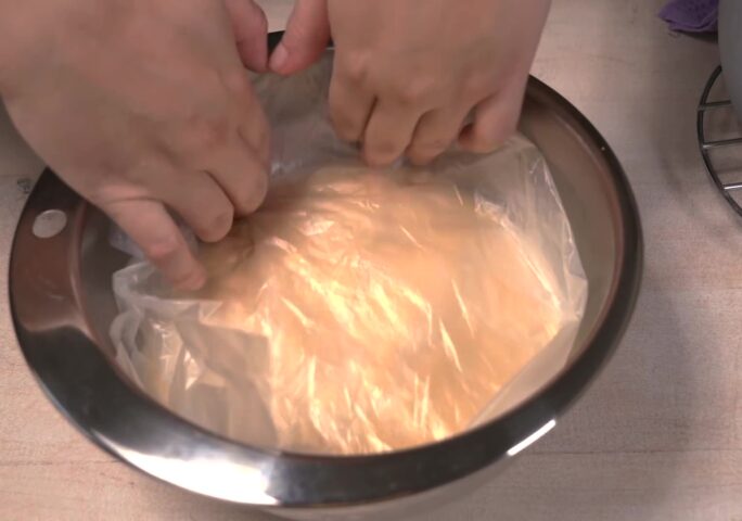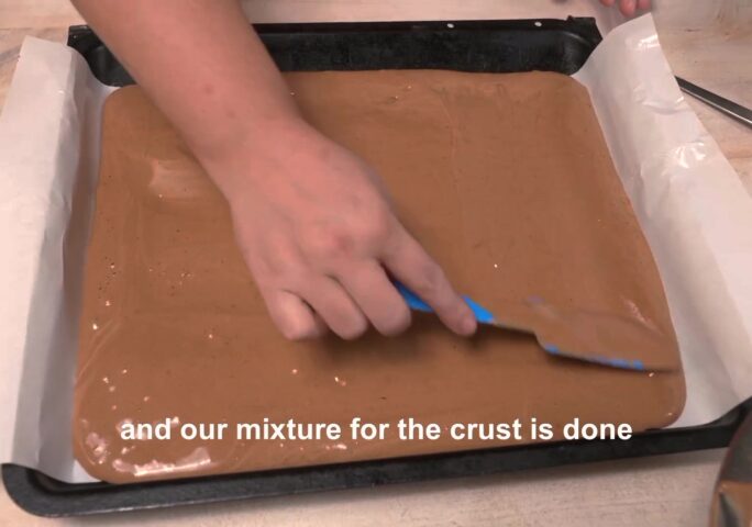 Put a baking sheet on the bottom and pour the mixture into the pan.