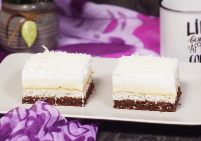The cake is done, at the end. You can sprinkle some coconut or finely chopped-up white chocolate on the top of it.