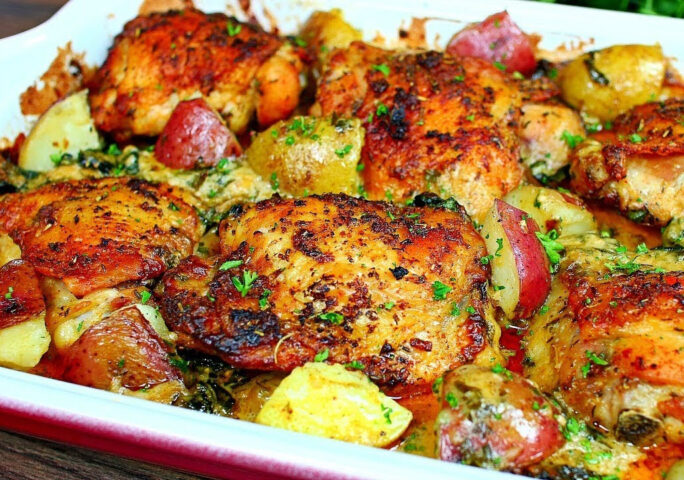 These Chicken and potatoes are deliciously baked in a creamy garlic butter sauce, packed with amazing flavors. A Creamy garlic butter chicken and potatoes recipe that is sure to satisfy your family with comfort. It is so easy to make, and don’t even get me started on how tasty it is. If you guys make this creamy garlic butter chicken and potatoes recipe, do let me know how it comes out.
