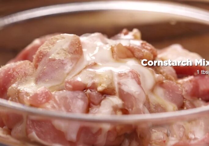 Season the chicken with salt, half of the Shaoxing wine, white pepper, and half of the cornstarch mixture. Mix well the seasoning into the chicken and set aside.