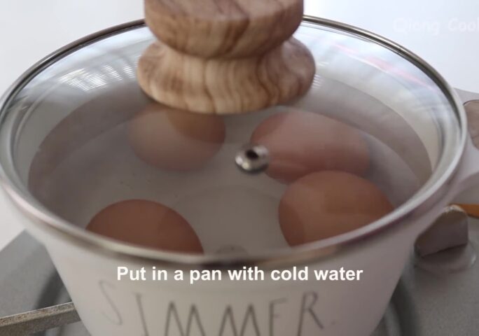 Take out the cooked eggs and put them in cold water for easier shelling.