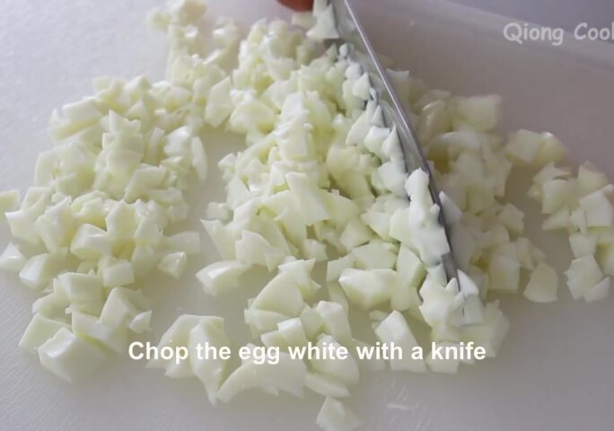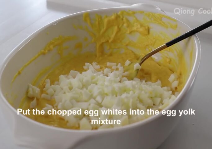 Put the chopped egg whites into the egg yolk mixture. Mix well.