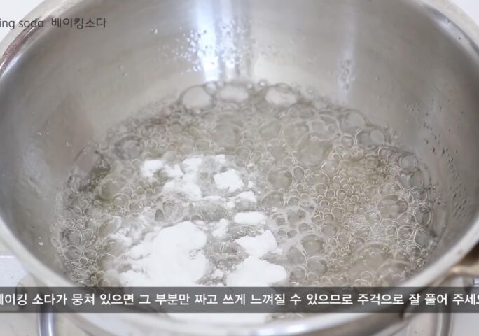 After heating to 300 ℉/150 ℃, turn off the heat and add baking soda.