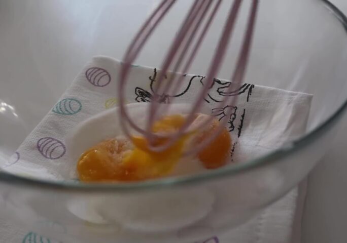 Mix the egg yolks with the sugar. Add corn starch and mix it well.