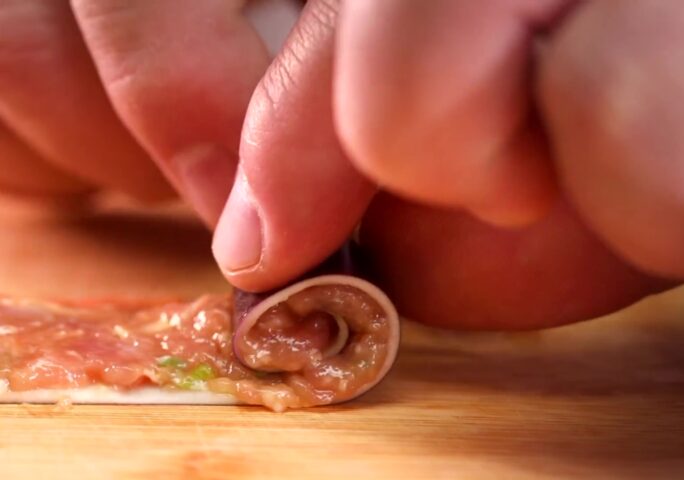 Imagine tender eggplant slices enveloping a savory filling of seasoned ground pork, minced shrimp, and aromatic spices, all rolled up and fried to golden perfection. Drizzled with a mouthwatering sauce infused with garlic, ginger, and a hint of chili heat, these rolls promise to ignite your taste buds and transport you to the vibrant streets of China.