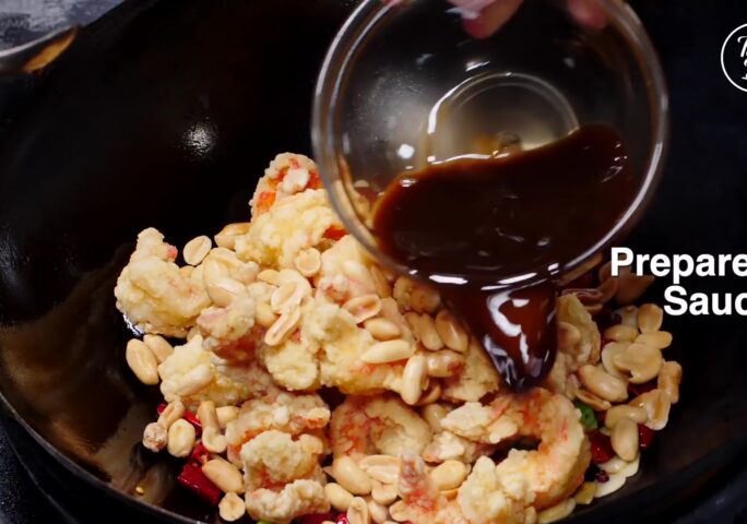 Imagine biting into perfectly fried, golden shrimp, each morsel bursting with the flavors of the sea, enhanced by a marinade that’s both simple and sublime. The real magic happens in the wok, where these crispy treasures are tossed with a medley of bold ingredients – dried chili, peppercorn, garlic, ginger, and green onions, all coming together in a symphony of flavors. The sauce, a harmonious blend of soy sauce, sweet black rice vinegar, and oyster sauce, adds a depth of flavor that makes each bite unforgettable.