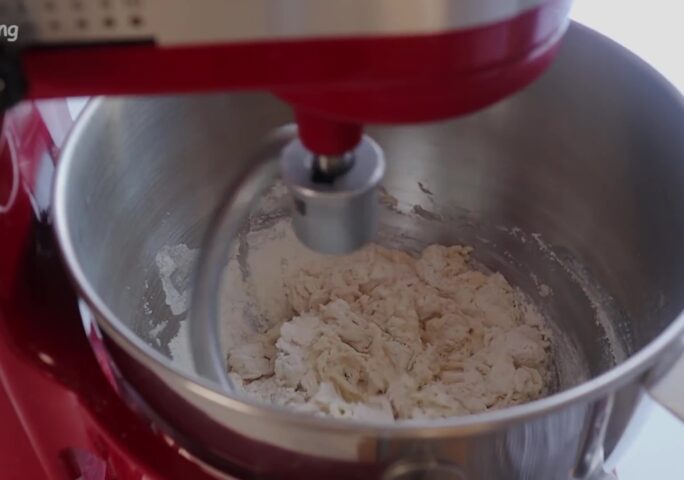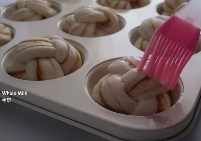 Mix the flour, yeast, milk powder, sugar, salt, and water. When mixed, knead the dough with a machine, add some water if the dough is too heavy. When the dough is not sticking to the kneading bowl, add the softened butter to it. When the butter is well mixed with the dough, put the dough in a bowl and let it sour in a warm place for 1-2 hours, until it doubles its size.
