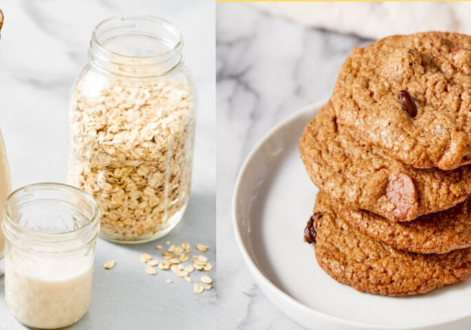 Oat milk is delicious, dairy-free milk that is crazy easy to make. It’s nut-free, low in fat, very affordable, and comes together in just minutes. Let me show you the best way to make rich and creamy homemade oat milk (that is NOT slimy!) PLUS I’ll show you how to make my oatmeal pulp chocolate chip cookies! Oat milk has been gaining in popularity lately and for good reason. It’s rich, creamy, and delicious PLUS it’s a plant-based, nut-free alternative to milk. It’s also relatively inexpensive milk to make and you don’t need any fancy equipment to make it. And my absolute favorite thing about homemade oat milk?? You can make oatmeal chocolate chip cookies with the leftover oat pulp.