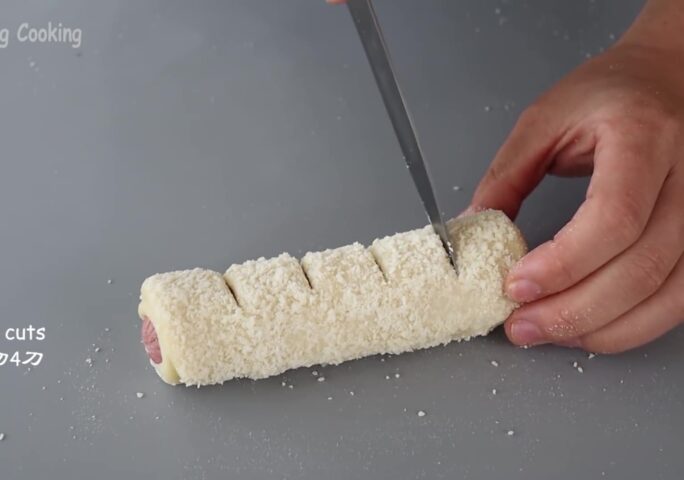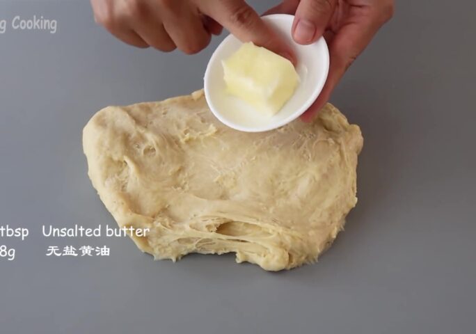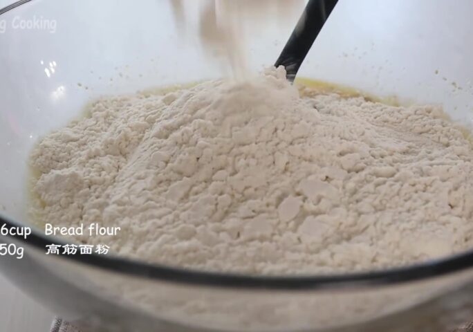 Mix egg with sugar, milk, instant yeast, and salt. Then add the bread flour and mix well.