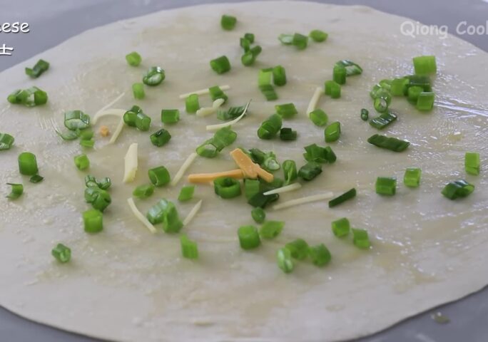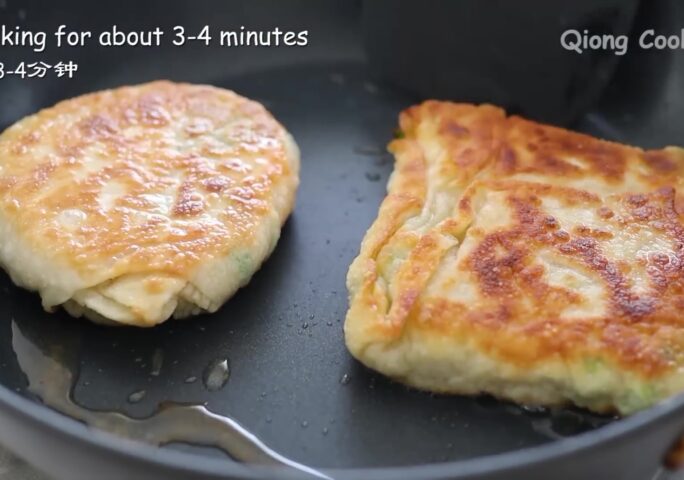This easy green onion bread is a perfect breakfast or dinner. The fried dough is both soft and crunchy with a fresh combination of the green onions is a delicious meal.