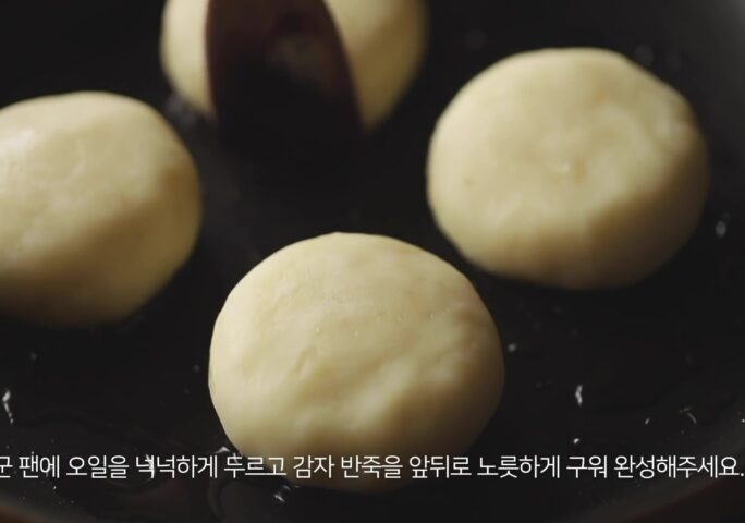 If you’re a cheese lover, you should definitely try a crunchy-on-the-outside-but-soft-on-the-inside «Potato Cheese Hotteuk (Honey Pancake)»! You can taste the light potato and savory cheese. It’s made purely out of potato dough without flour. It’s nutritious and so comforting for the insides.