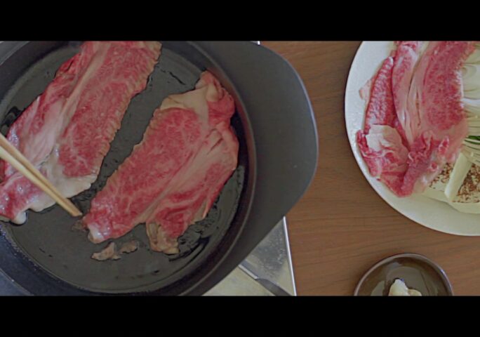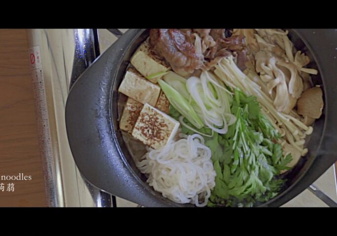 Sukiyaki is a very popular Japanese hot pot dish. This time is prepared in Kansai style. It is hot, flavorful, and easy to prepare, a heart-warming meal to share at the table!