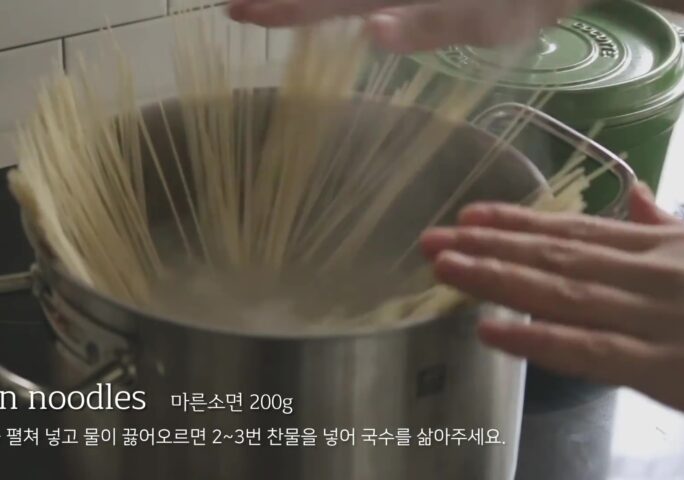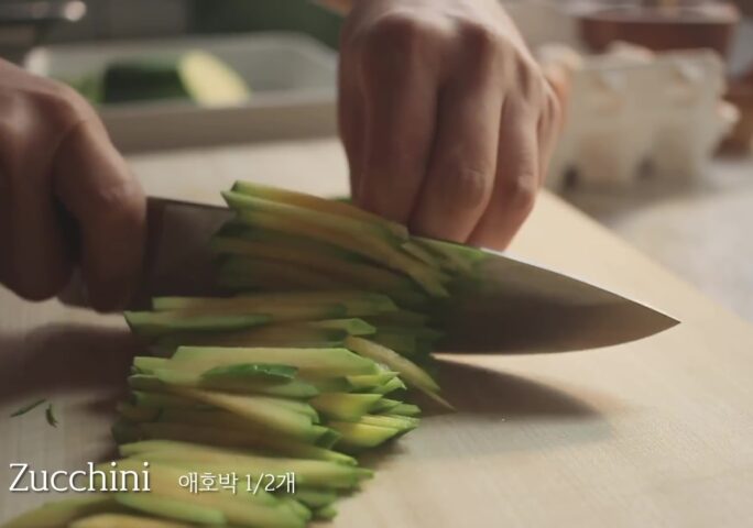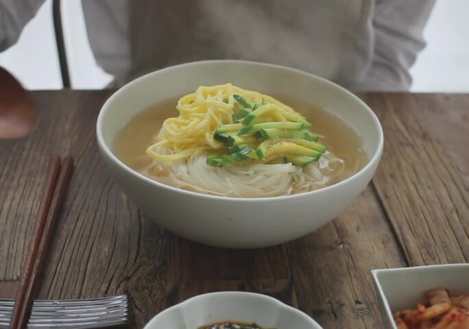 The Korean Banquet Noodle is a third recipe in the row of noodle recipes and is an easy tasty noodle soup. Made with seasoned seafood stock, fried eggs, and zucchini, together with the spicy sauce it is a perfect dish for a hot dinner.