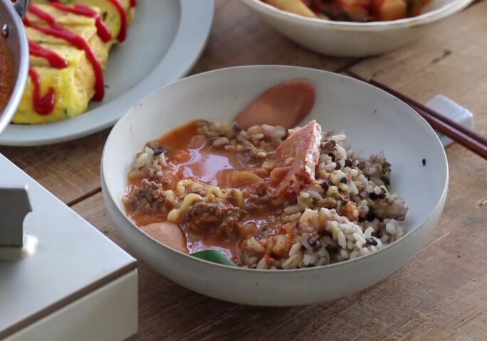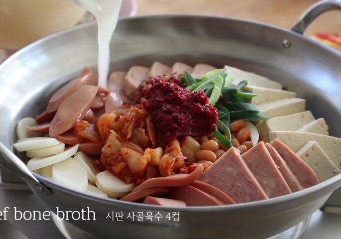 The Korean Army Stew (Budae-Jjigae) is a hot pot dish that is very nutritious and delicious at the same time. You can throw all your leftovers into one pot and cook them. It is based on ham, sausages, ground beef, beans, tofu, and kimchi altogether with the noodles and cheddar cheese create this dish so tasty, that would make you feel satisfied for a long time. You can replace the ingredients with what you have in your fridge. Try and enjoy one of the most popular Korean dishes at home.