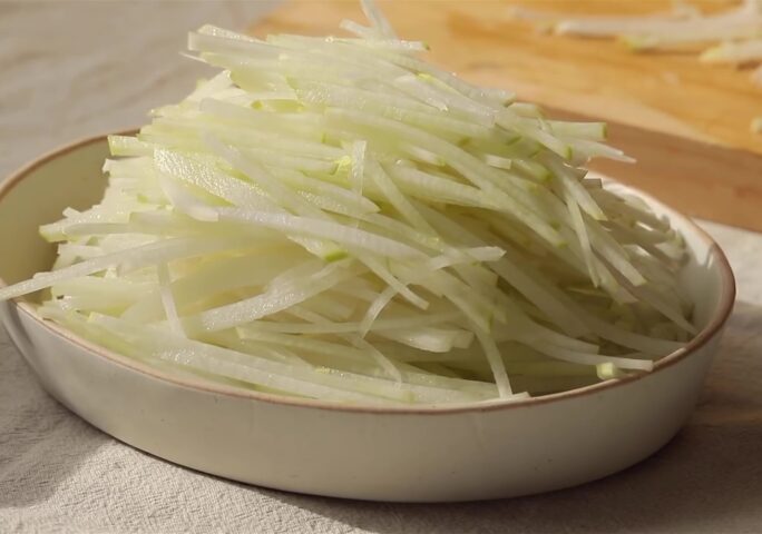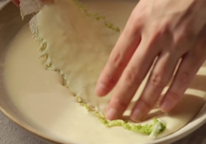 When it’s cold in winter, thoughts of golden brown ‘napa cabbage jeon’ often cross your mind. Napa cabbage, boasting of a sweet and deep flavor, especially in cold weather, makes a can’t-miss side dish on the winter dinner table. Coat the yellow cabbage leaves with flour, pan-fry them, place some soft textured stir-fried radish on them, and roll them. Then, it’s all yours to enjoy. How about napa cabbage roll jeon for this New Year’s Day?