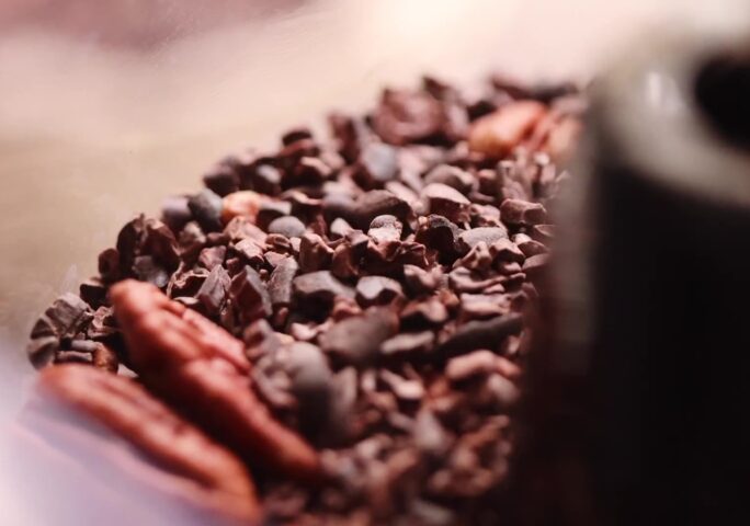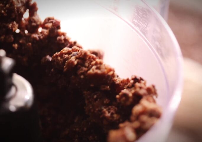 Place the pecans and chocolate in a food processor and process until you have a fine crumble.