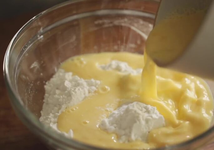 Put tapioca starch, glutinous rice flour, strong flour, and salt in a bowl and mix lightly with milk, starch syrup, and eggs.