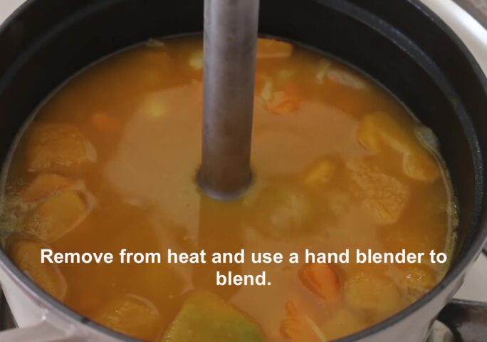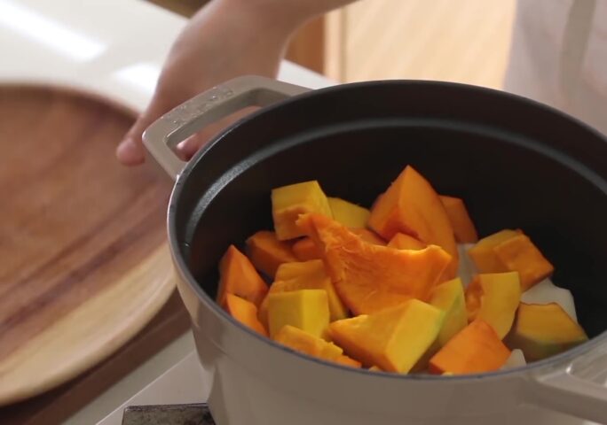 Warm and tender soup soothe people’s mind and body. Sweet pumpkin has a distinctive sweet flavor and nutrition and is beloved by everyone. Also, its beautiful orange color lightens the dinner table up. In this recipe, add potato and onion to enrich the taste and flavor. Remember, sweet pumpkin soup is not only good for casual home parties, but also for breakfast.