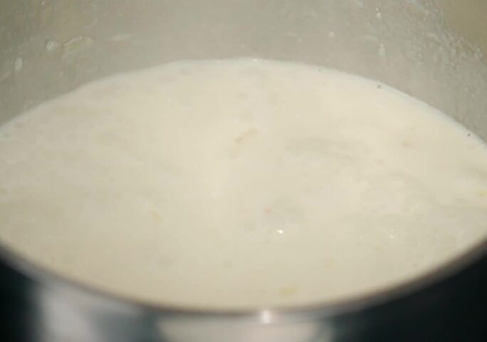 Pour white wine into the pan, bring to boil, then flambe, add heavy cream to the pan, simmer on low heat for 10 minutes. (You can go ahead to cook the salmon while the sauce is been cooking.)