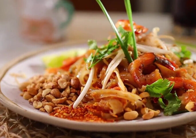 One of the most popular dishes or even the most popular is Shrimp and Chicken Pad Thai. It is a real street food classic. A stir-fry dish made with rice noodles, shrimp, chicken, or tofu, peanuts, a scrambled egg, and bean sprouts. It is amazingly tasty and full of flavors. Give it a try!