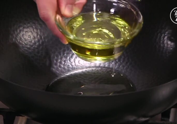 Strain noodles. Heat wok with oil. Cook in 2 batches max.