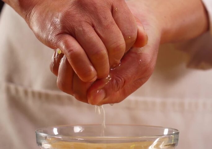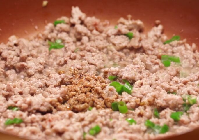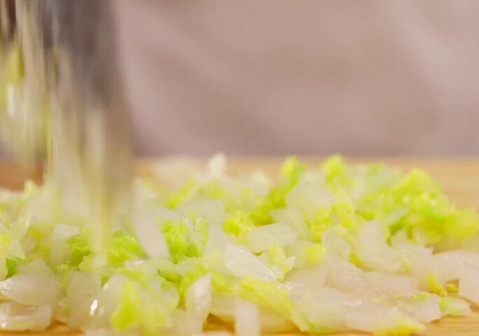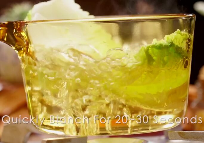 Place the napa cabbage in boiling water for 30 seconds and remove.