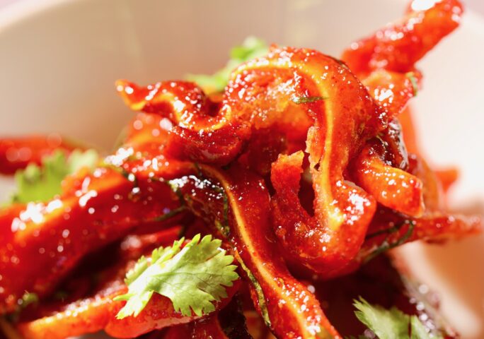 Sweet & Sour Pig Ears are a perfect appetizer. This Asian-inspired dish is a good starter before eating or drinking. Enjoy their crispiness in a sweet and sour sauce seasoned with cilantro.
