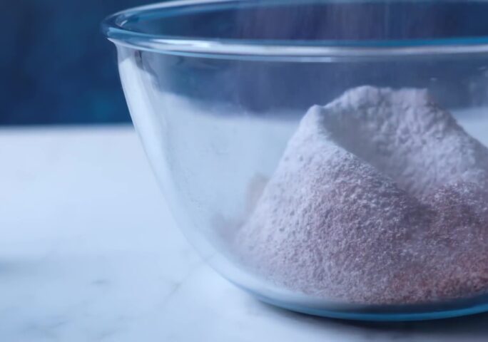Sift cake flour, cocoa powder, Corn Starch, and prepare 8 eggs. Preheat up to 329 °F /165 °C and down to 347 °F/175 °C.