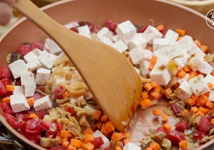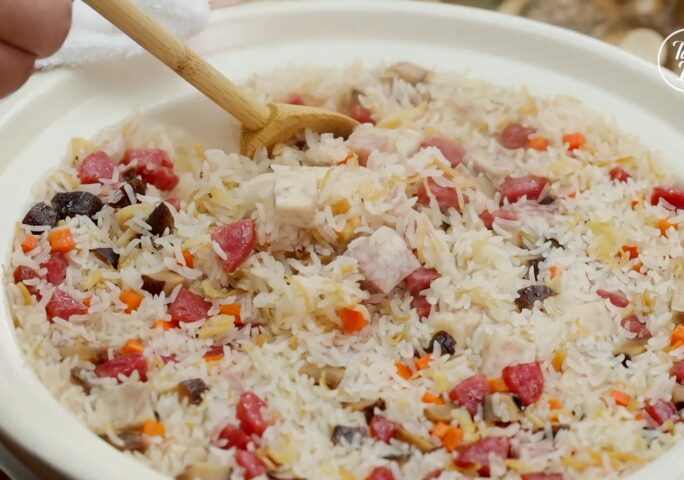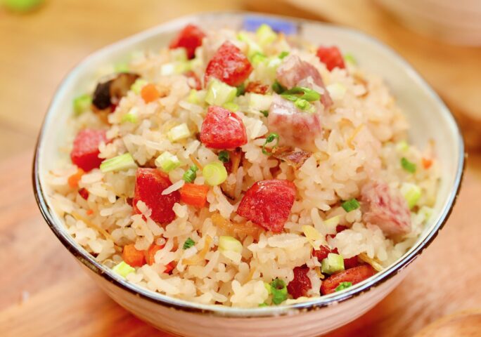 One of the easier meals of Chinese cuisine is the Taro & Sausage Claypot Rice. Prepared first by soaking some of the ingredients and then dicing and mixing together with the rice. It is easy, tasty, and doesn’t need much care, just to be steamed in a clay pot. Perfect for a healthy dinner or light lunch.