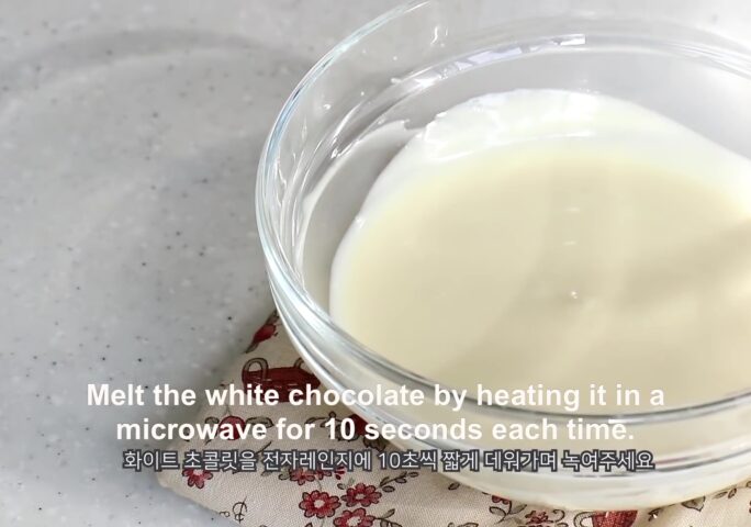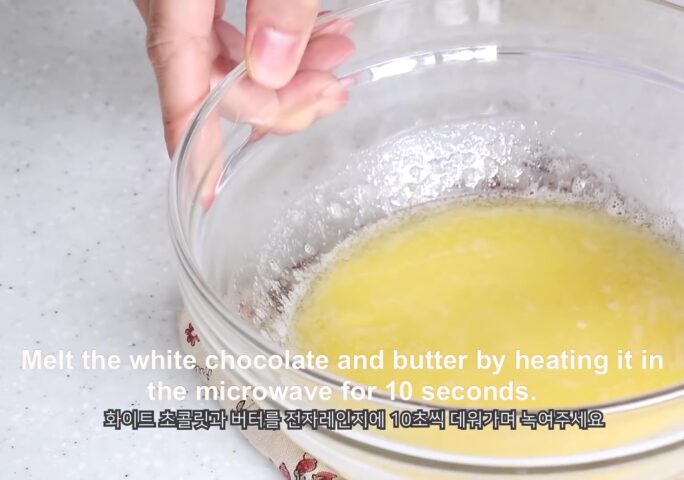 Melt the white chocolate and butter by heating it in the microwave for 10 seconds.