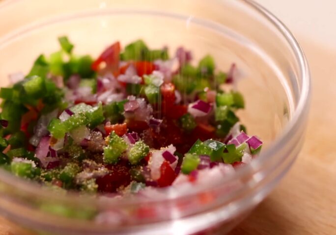 Prepare tomato mixture: In a separate bowl, combine chopped tomatoes, onion, jalapeño, a pinch of salt to taste, and garlic powder. Stir to combine.